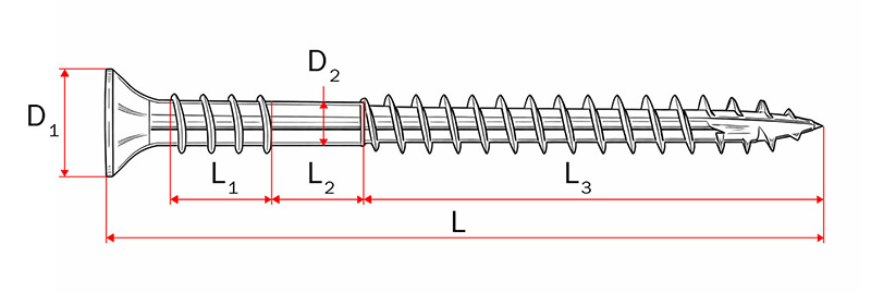 • L3 - długość pierwszego gwintu z czubkiem: 60 mm