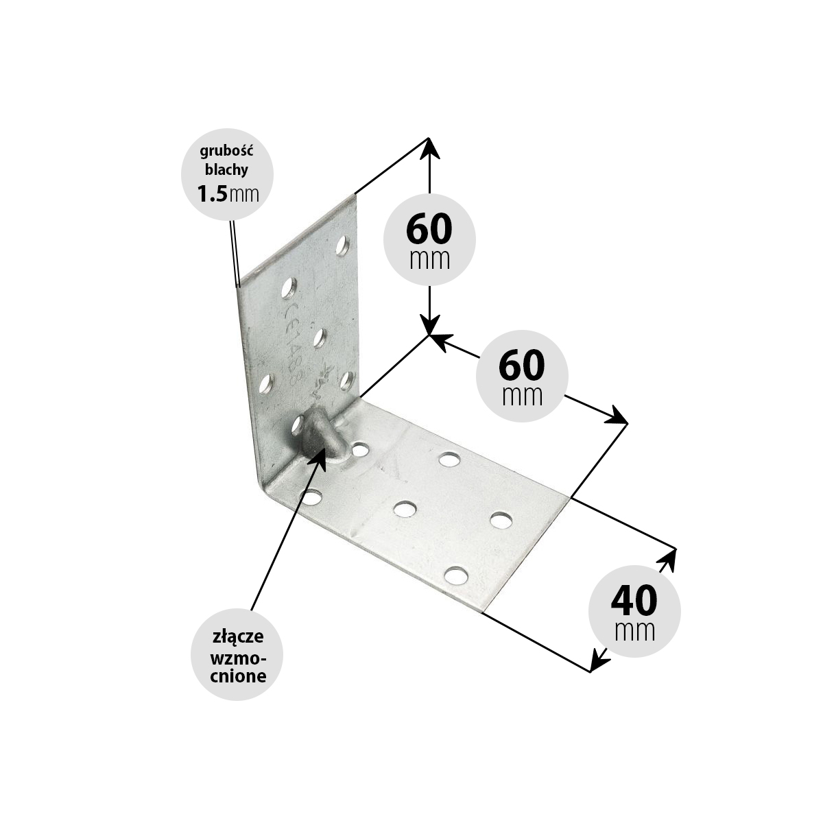 Kątownik ciesielski montażowy 60x60x40 1.5 (szt.)