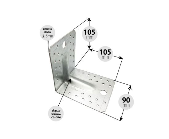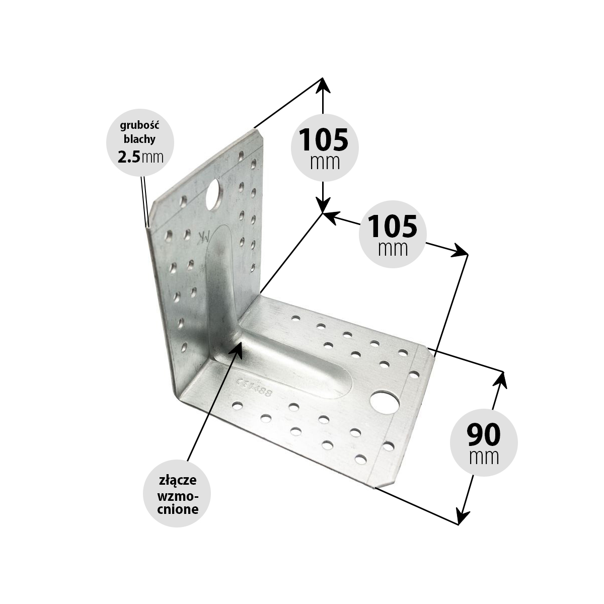 Kątownik ciesielski montażowy wzmocniony 105x105x90 2.5 (szt.)