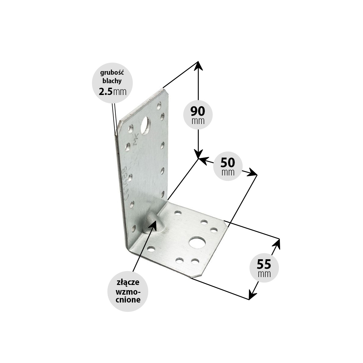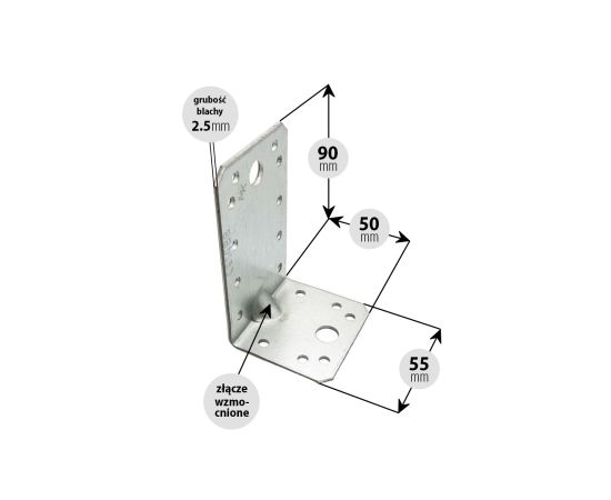 Kątownik ciesielski montażowy wzmocniony 50x90x55 2.5 (szt.)
