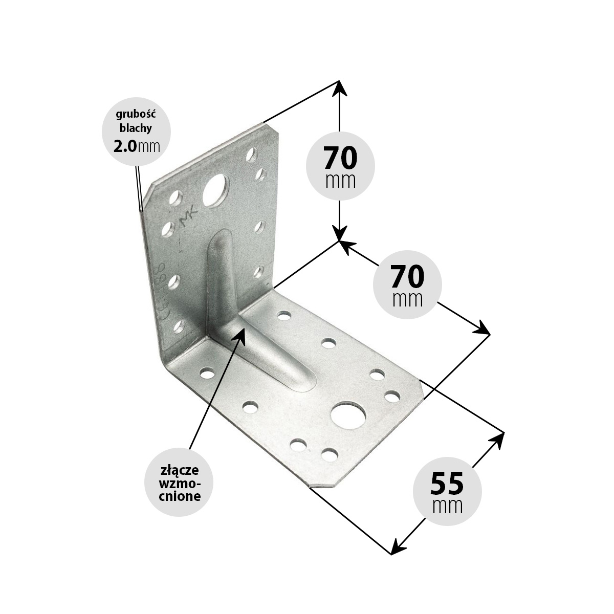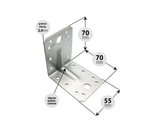 Kątownik ciesielski montażowy wzmocniony 70x70x55 2.0 (szt.)
