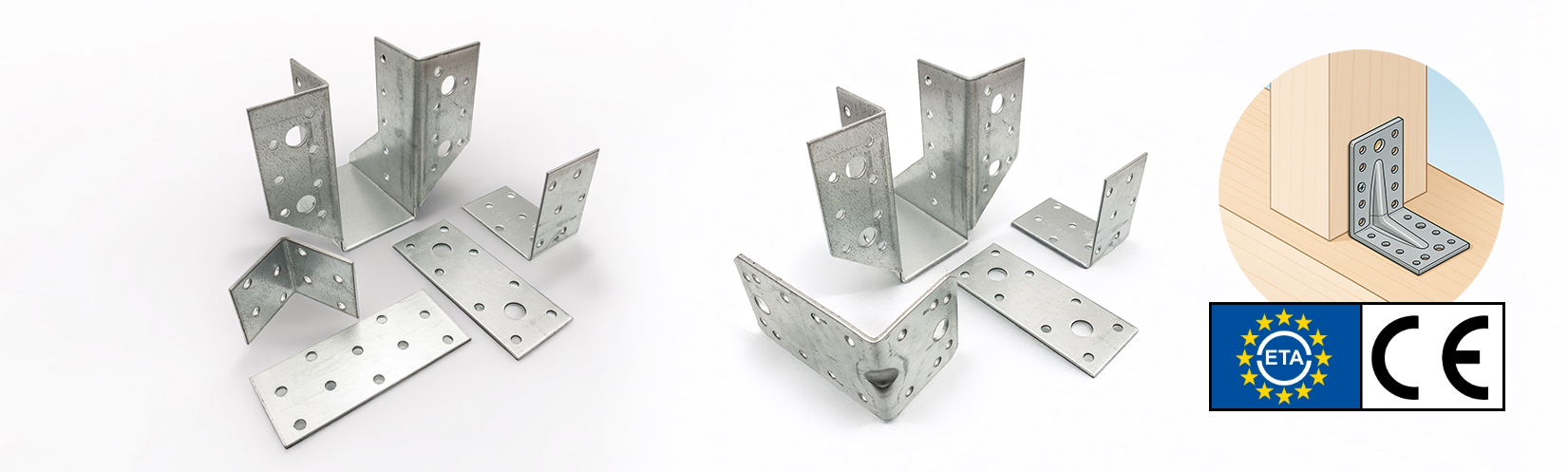 Złącza do łączenia drewna z drewnem oraz drewna z betonem w różnego rodzaju konstrukcjach.